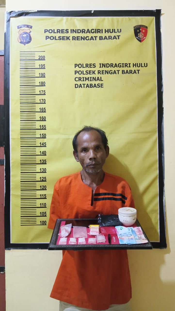 Malam yang tenang di Kelurahan Pematang Reba, Kecamatan Rengat Barat, berubah mencekam ketika suara langkah polisi memecah keheningan. Seorang pria paruh baya, Jendrizal alias Jen Bib (51), tak berkutik saat digerebek petugas di rumahnya, Kamis.