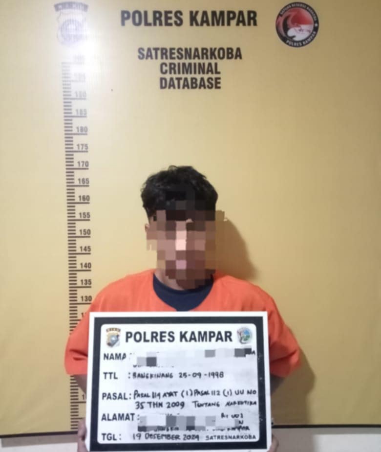 Satnarkoba Polres Kampar berhasil mengamankan RI (29) warga Kota Pekanbaru, Rabu(11/9/2024) sekira pukul 19.00.