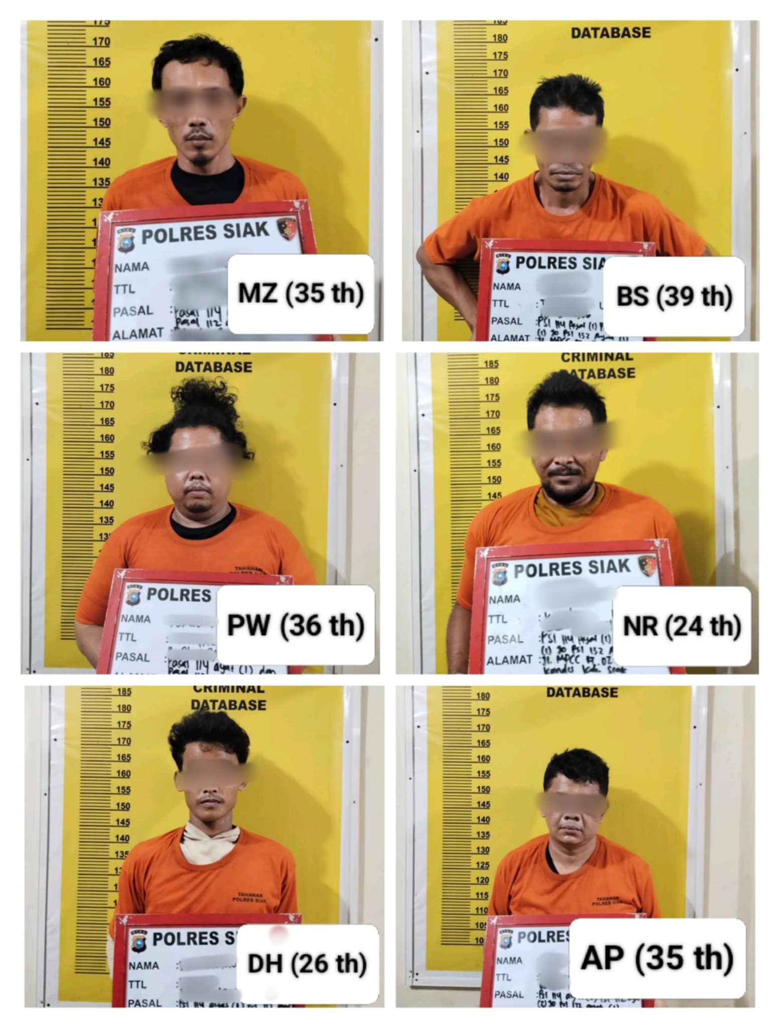 Satuan Reserse Narkoba Polres Siak kembali menorehkan prestasi. Dalam dua operasi berbeda pada Sabtu (25/10/2025) dini hari, polisi berhasil mengungkap peredaran sabu dengan total barang bukti seberat 6,59 gram dan menangkap enam tersangka di.