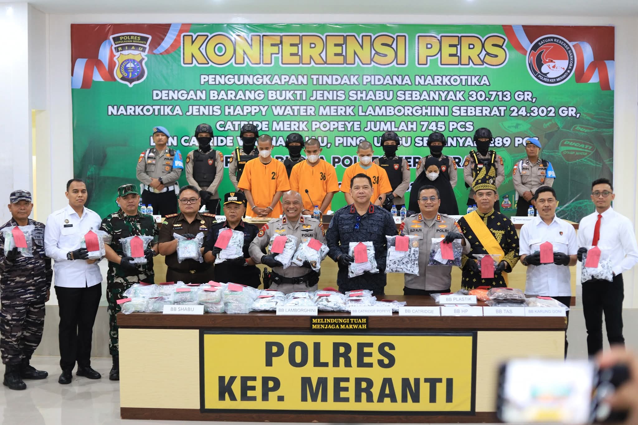 Dini hari di perairan sunyi antara Riau dan Malaysia, langkah kaki aparat kepolisian memutus jalur gelap peredaran narkotika internasional. Dari operasi senyap itu, Polres Kepulauan Meranti berhasil menyita 30,7 kilogram sabu, 24,3 kilogram cairan.