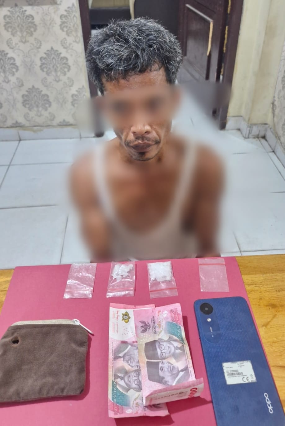 Satresnarkoba Polres Kampar menangkap seorang pria berinisial YU (42), warga Desa Baru Gajah, Kecamatan Tapung, Kabupaten Kampar, saat tengah tertidur pulas di rumahnya, Selasa (1/7/2025) sekitar pukul 11.30 WIB. Dari tangan pelaku, polisi.