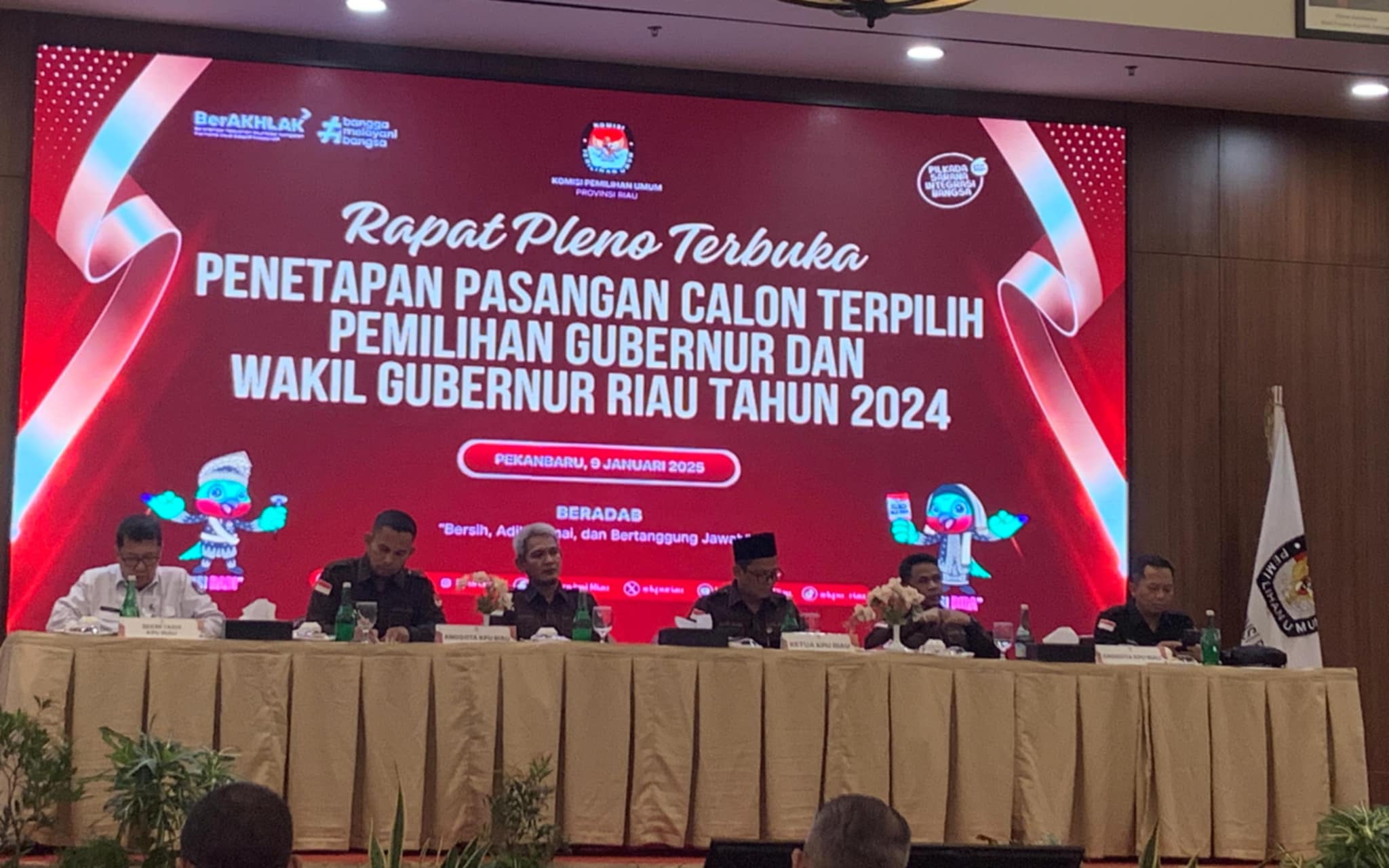 Komisi Pemilihan Umum (KPU) Provinsi Riau resmi menetapkan pasangan Abdul Wahid dan SF Hariyanto sebagai Gubernur dan Wakil Gubernur Riau.