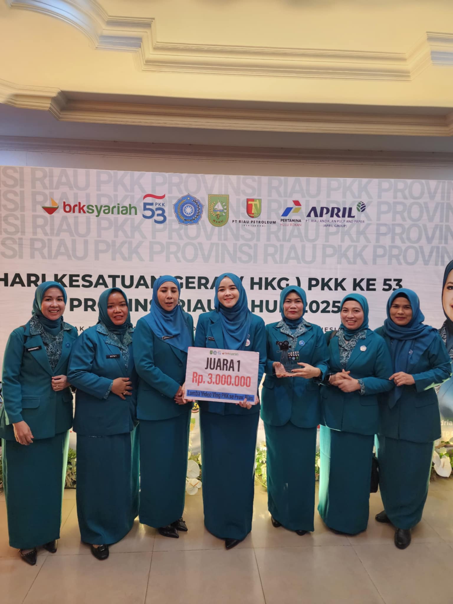 Tim Penggerak Pemberdayaan dan Kesejahteraan Keluarga (TP PKK) Kabupaten Pelalawan berhasil meraih juara pertama dalam lomba video vlog pada Peringatan Hari Kesatuan Gerak (HKG) PKK ke-53 Tingkat Provinsi Riau tahun.