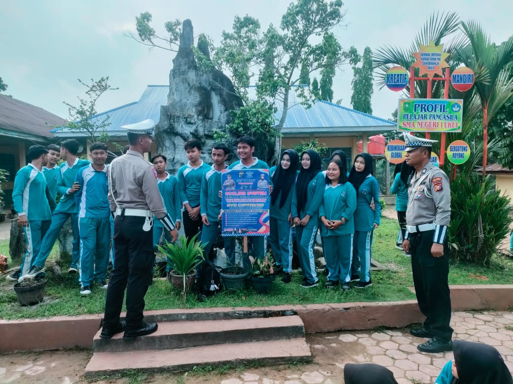 Satuan Lalu Lintas Polres Pelalawan mengadakan kegiatan sosialisasi atau penyuluhan kepada siswa-siswi tentang peraturan tertib berlalu lintas serta sosialisasi safety driving dan tahapan Pemilu.