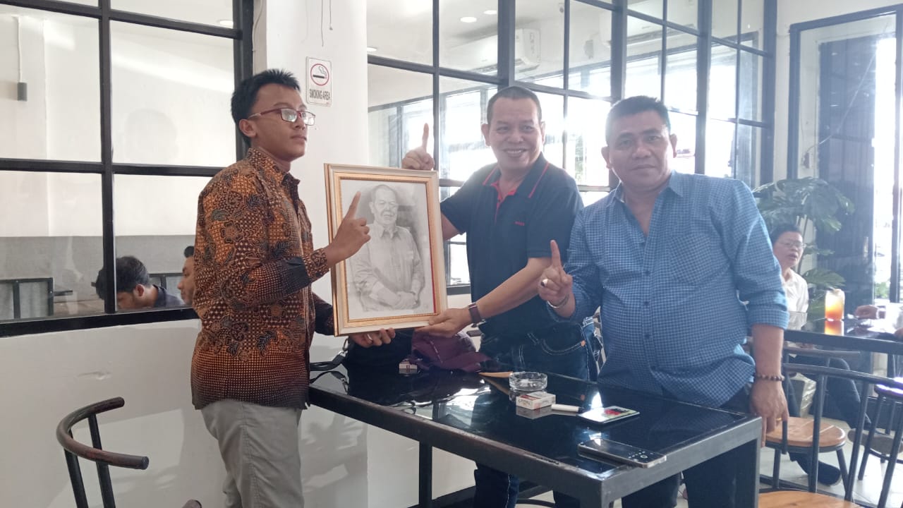 Muhammad Sehan Dwi Alfadhillah siswa kelas 3 SMA N 2 Tualang menyerahkan lukisan buatannya kepada calon bupati Siak Ir H.