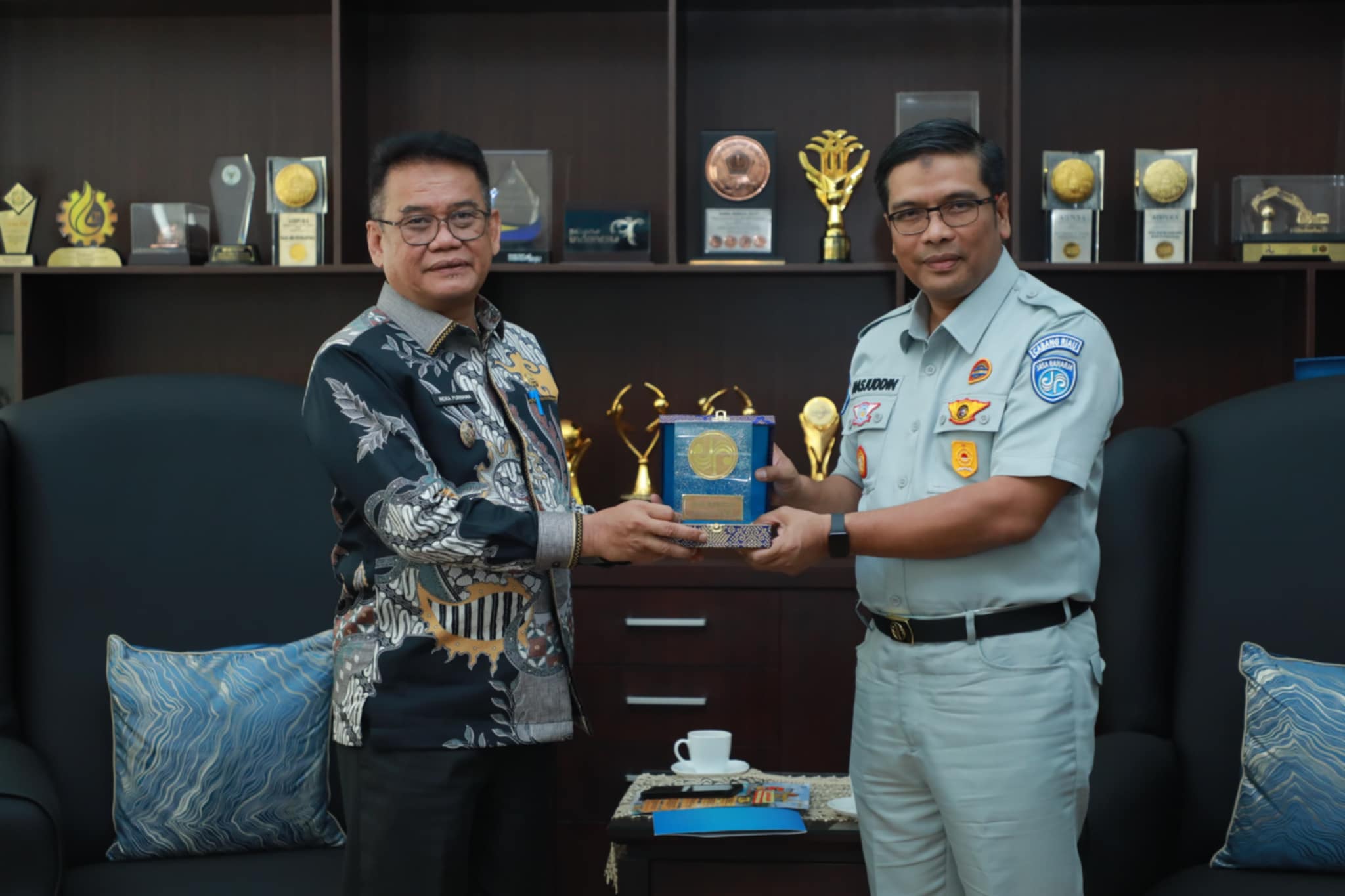 Pjs Bupati Siak Indra Purnama menerima audiensi Kepala Cabang Jasa Raharja Provinsi Riau Hasjuddin dan Samsat Siak.
