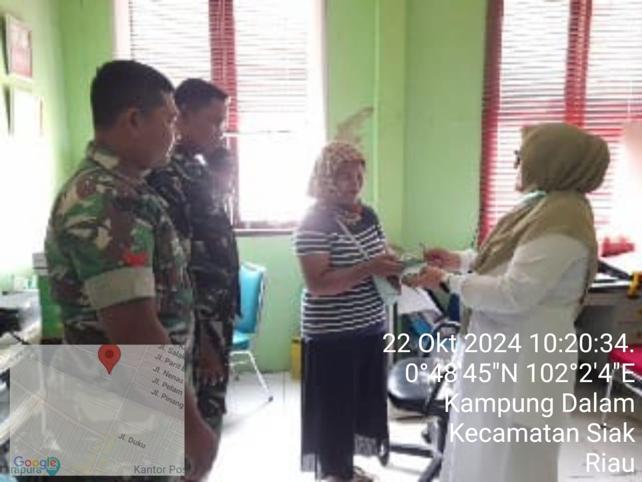 Babinsa Koramil 01/Siak Kodim 0322/Siak, Serda S. Nasution, melaksanakan kegiatan pengecekan stunting terhadap anak-anak yang mengalami kekurangan.