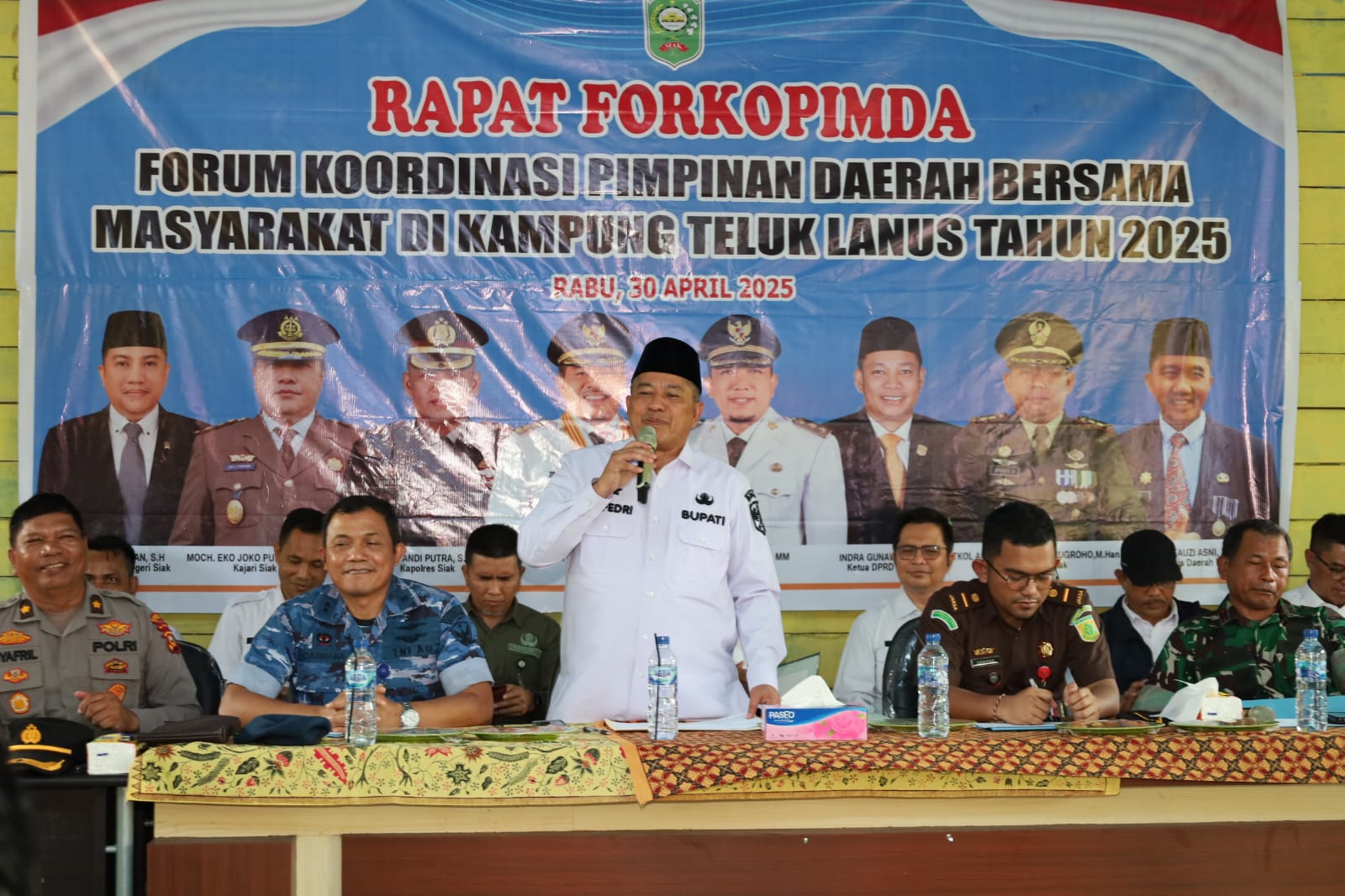 Mengantisipasi potensi kebakaran hutan dan lahan (Karhutla) saat musim kemarau, Bupati Siak Alfedri mengingatkan warga Teluk Lanus untuk tidak membuka lahan dengan cara.