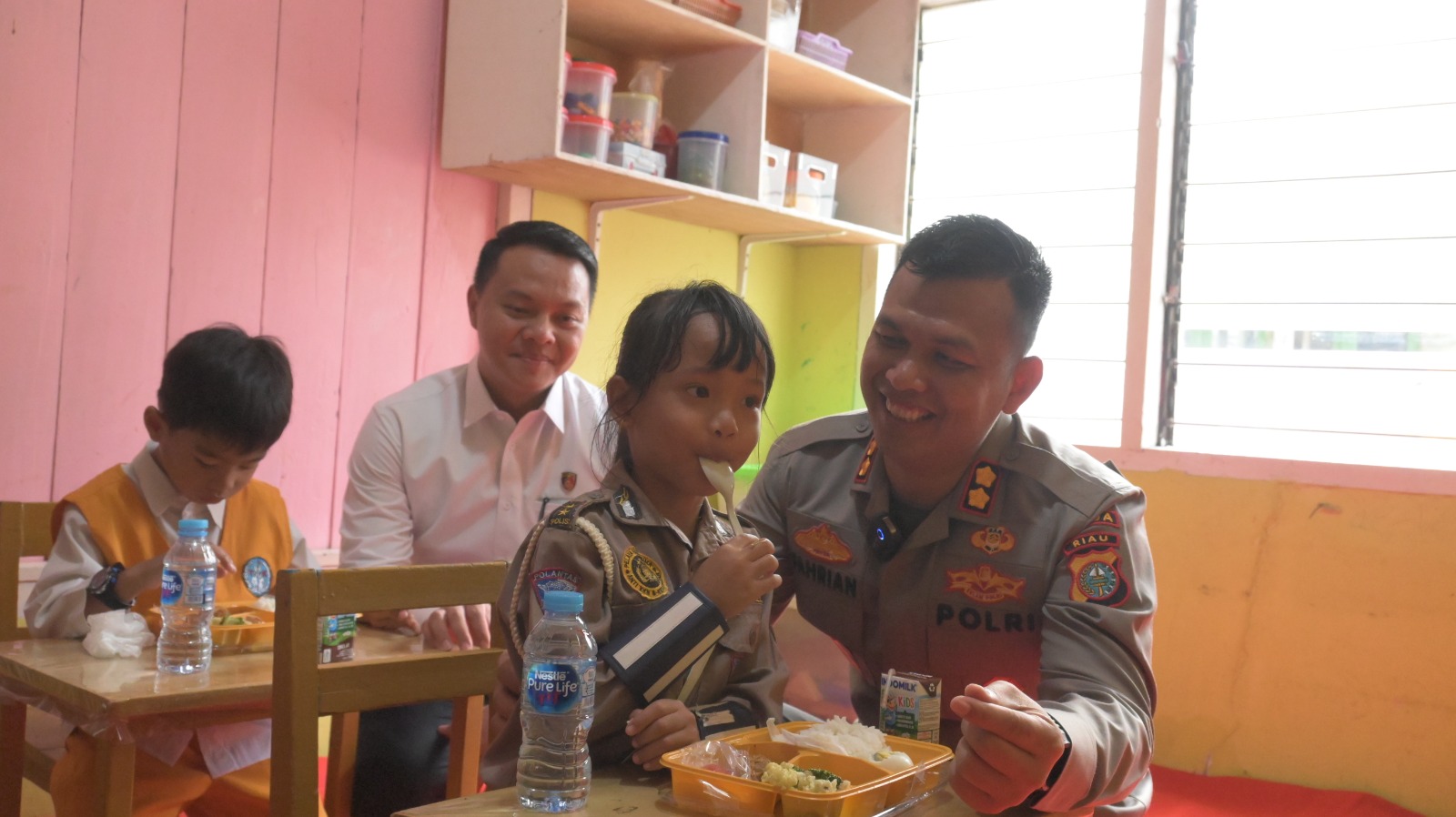 Suasana ceria menyelimuti TK Kemala Bhayangkari 04 Rengat, saat para murid menerima makanan bergizi gratis dalam kegiatan Program Makan Bergizi Gratis (MBG)..