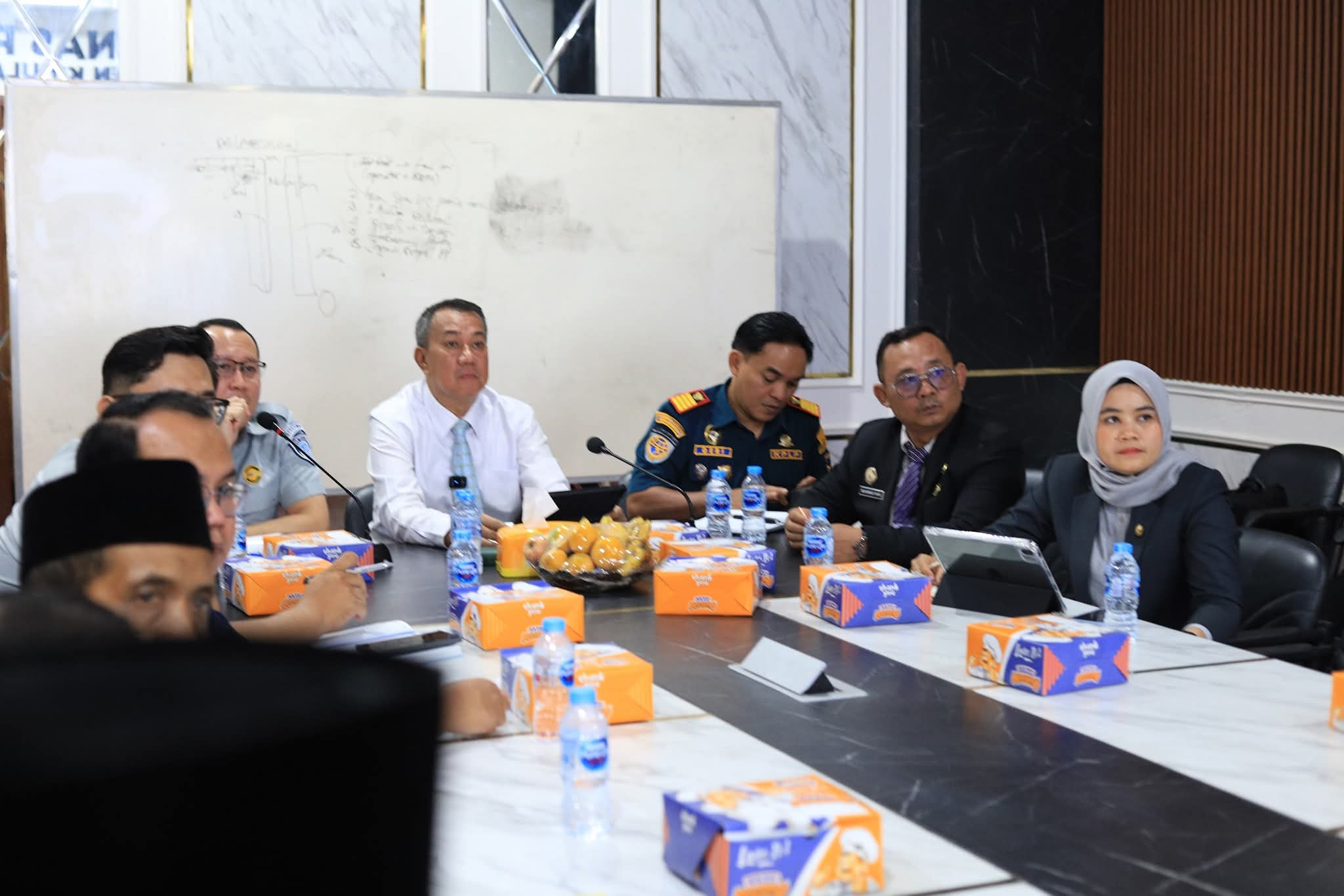Wakil Bupati Kepulauan Meranti, Muzamil Baharudin, memimpin rapat pembahasan premi asuransi operasional Kempang di Ruang Rapat Dinas PUPR Kepulauan Meranti, Rabu, 1 Oktober.