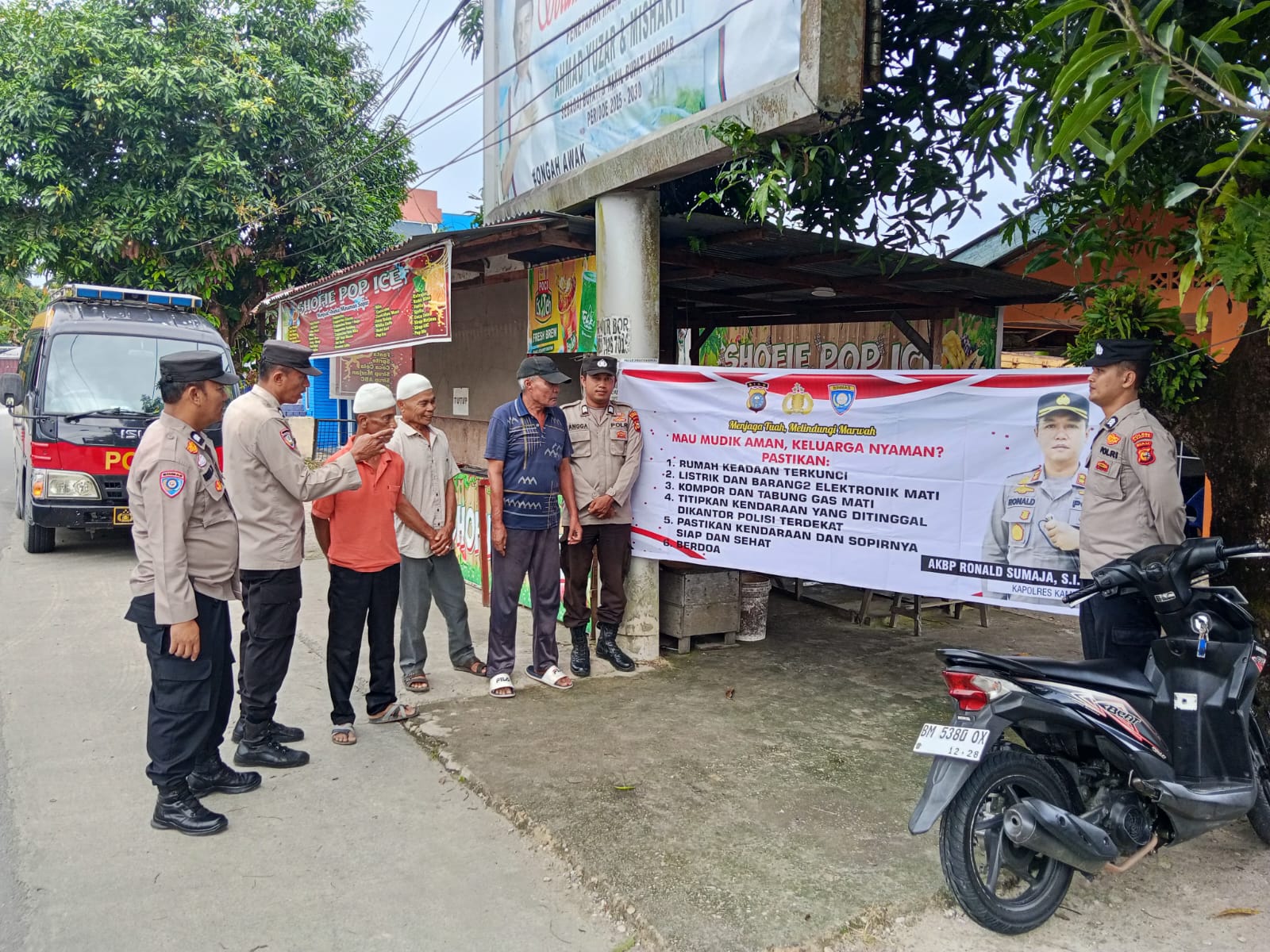 Sat Binmas Polres Kampar menggelar sosialisasi keselamatan mudik Lebaran 1446 H di beberapa desa dan kelurahan di wilayah hukum Polres Kampar, Jumat (28/3/2025)..