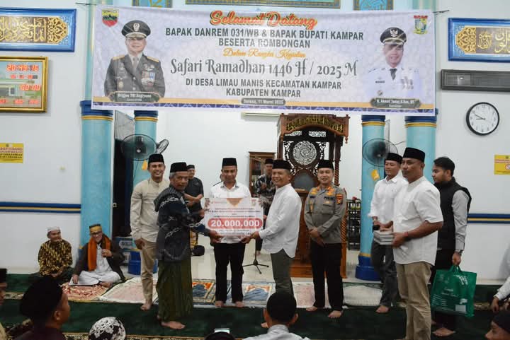 Komandan Korem 031/Wira Bima (Danrem 031/WB), Brigjen TNI Sugiyono, melaksanakan kegiatan Safari Ramadhan di Kabupaten Kampar pada Selasa (11/3)..
