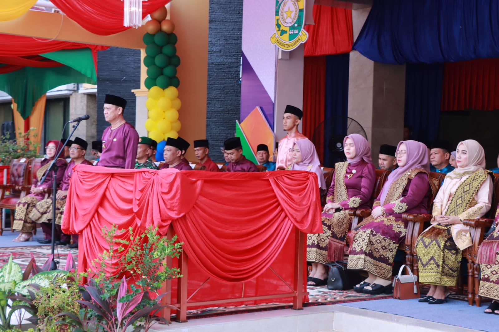 Peringatan Hari Jadi Kabupaten Kampar yang ke-75 tahun dirayakan dengan penuh semangat di Lapangan Apel Kantor Bupati Kampar pada Kamis, 6 Februari 2025..