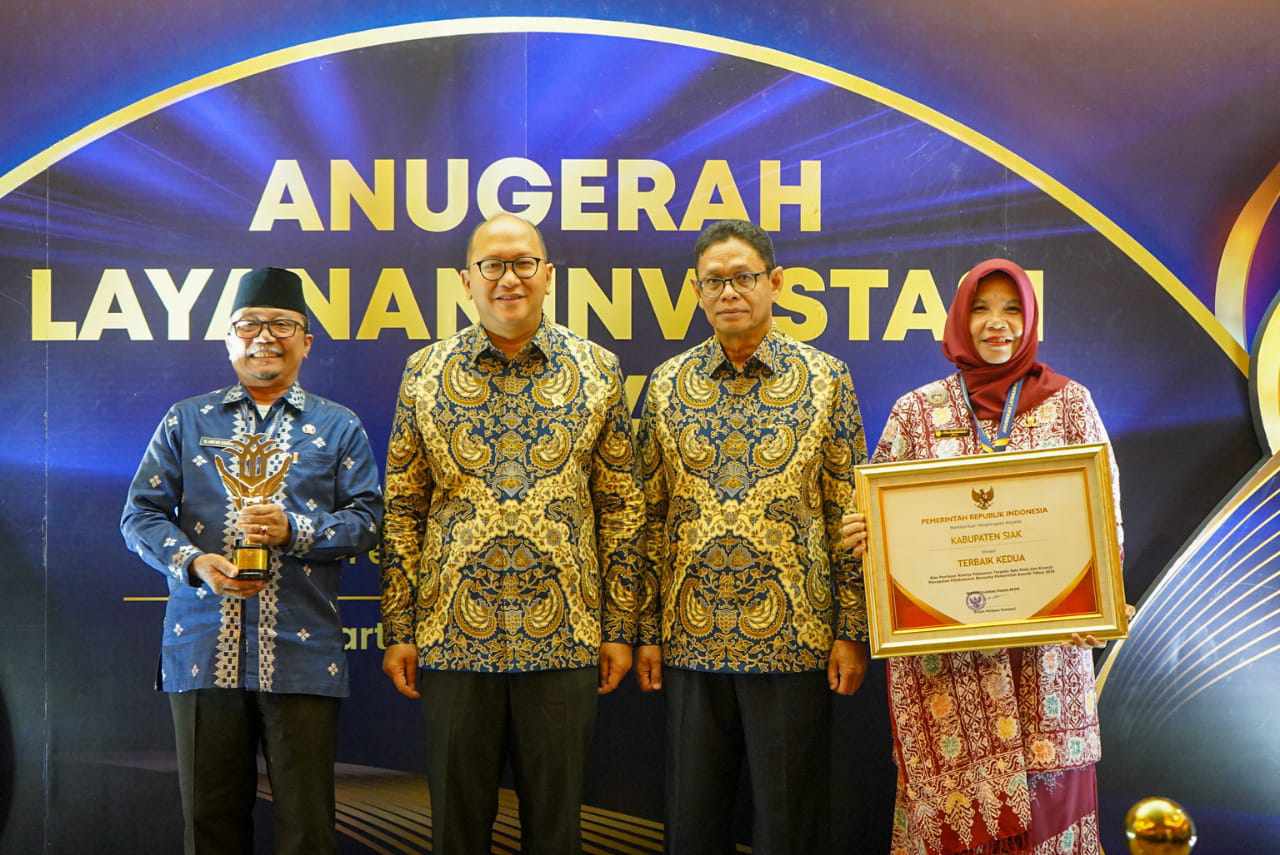 Pemerintah Kabupaten Siak mendapat penghargaan Anugerah Layanan Investasi (ALI) 2024 kategori.