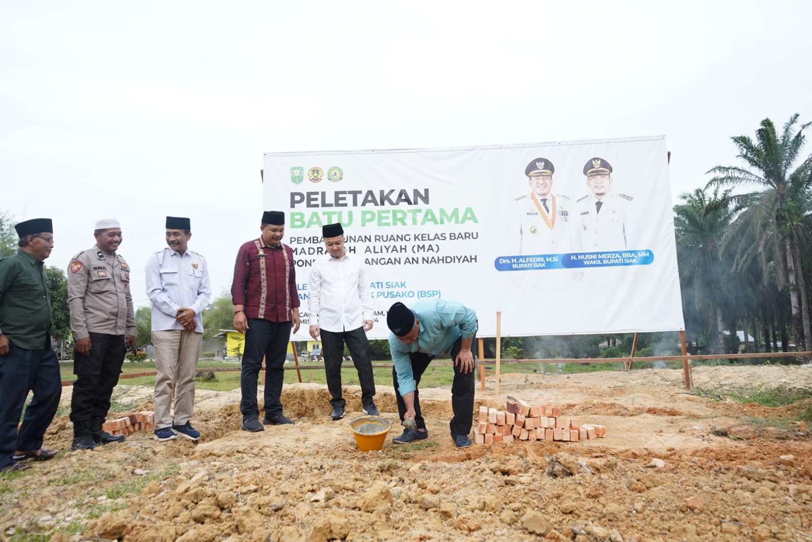 Bupati Siak Alfedri secara resmi melakukan peletakan batu pertama atas pembangunan asrama Putri di Pondok Pesantren Asrama Pendidikan.