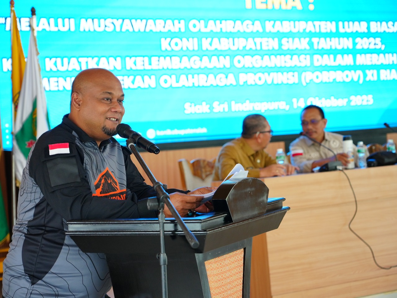 “KONI adalah rumah besar olahraga. Saya berharap ke depan olahraga di Kabupaten Siak semakin maju dan siap menyongsong Porprov XI Riau 2026,” ujar Syamsurizal.